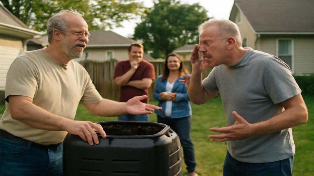 “I mean,” he said, softening a fraction, “I’m not trying to be the compost police. I just… don’t want my backyard to smell like science experiments gone wrong.”